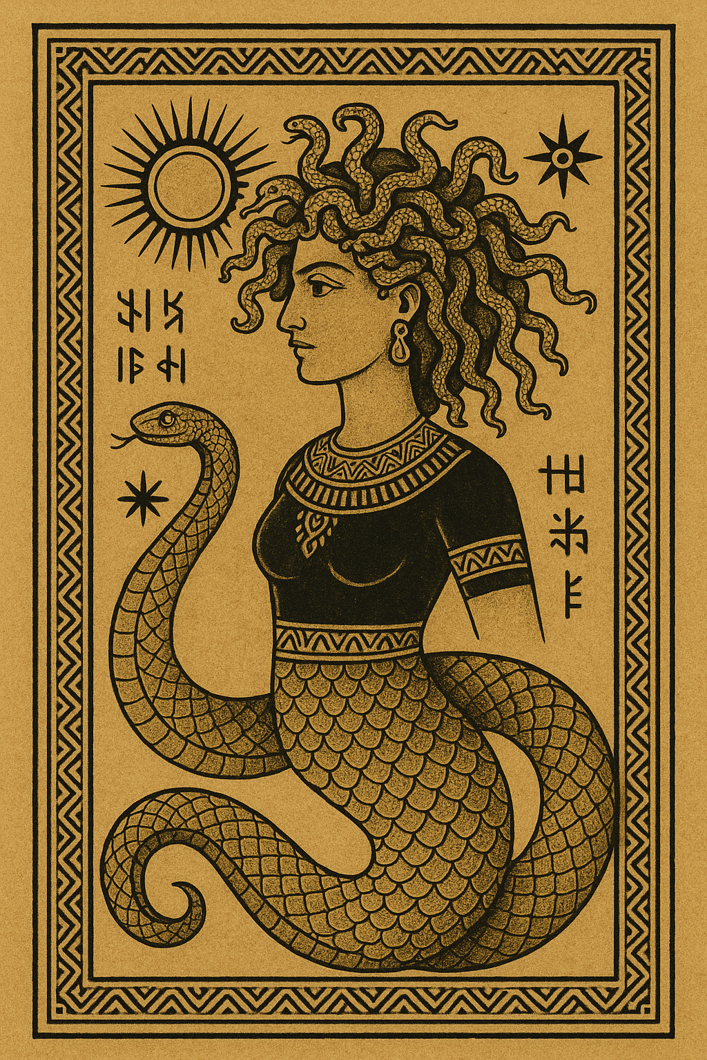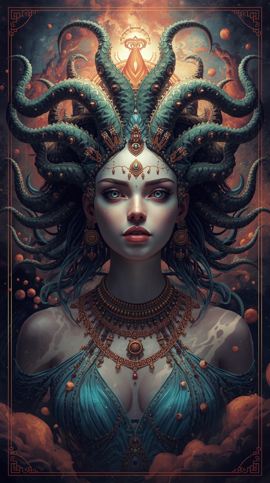 uzaylı motifli medusa yunan ve türk sembol harmanlamasi